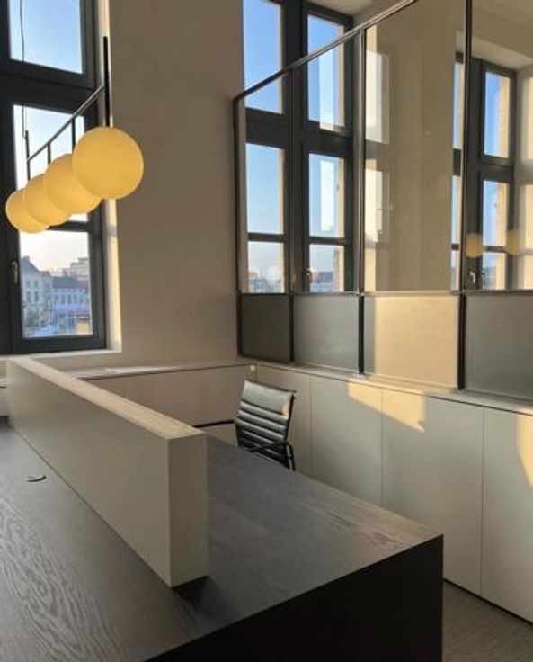 De aangeboden private office situeert in de iconische Ballroom, op de eerste verdieping. Deze prachtige, lichtrijke ruimte geniet van een uniek uitzicht over de Grote Markt.