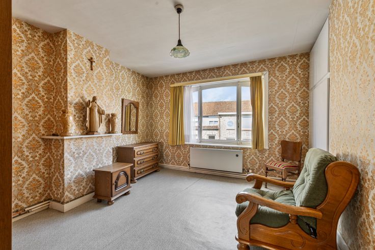 In de schaduw van de kerk van Beveren stel ik u deze te renoveren halfopen woning voor met zuid gerichte tuin. Bij het betreden van de woning komt u binnen via de lichtrijke leefruimte die grenst aan de grote keuken met zicht op de goed onderhouden tuin.