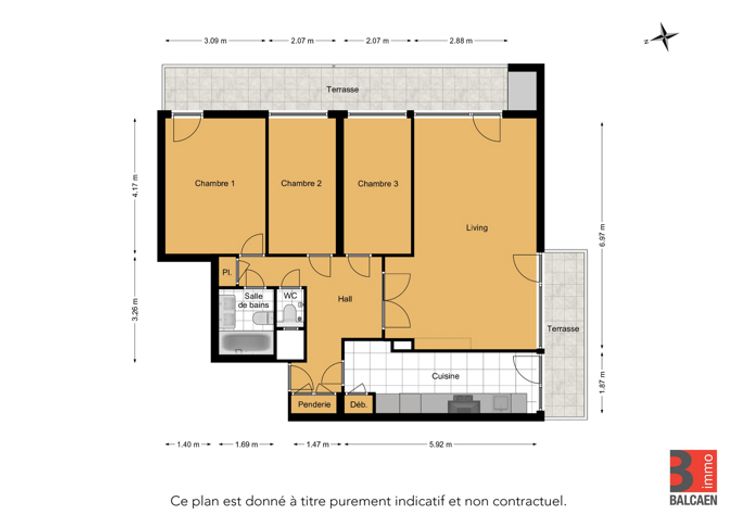 JETTE: appartement gelegen in een rustige wijk bekend om zijn levenskwaliteit en vele groene ruimtes, tussen het Parc Roi Baudoin en de Avenue de l'Exposition. Vlakbij winkels (Delhaize Arbre Ballon, Carrefour Arbre Ballon, Colruyt, enz.), scholen (école Aurore, Collège Regina Pacisinstituut, enz.), talrijke parken en bereikbaar met metro 6, bus 83 en trams 93 en 51.   We presenteren dit 94m² (PEB) appartement op de 22e verdieping van een condominium, met lift.  De flat bestaat uit: inkomhal met vestiaire, woonkamer en keuken verbonden door een terras, nachthal die leidt naar de drie slaapkamers met toegang tot het 2e terras, apart toilet en badkamer.  Een afgesloten garagebox GP41 en kelder nr. 98 zijn beschikbaar tegen een meerprijs van €25.000. Het bedrijfskapitaal, inclusief voorziening voor water, verwarming en nutsvoorzieningen, bedraagt : 300€/maand  Het reservefonds bedraagt : 28€/maand  Het PEB is D. Type verwarming: collectief. De woning is bewoond. Huidige huur: 999€ met toeslagen Bezoek onze website (www.immobalcaen.be) om te zien waar de woning zich bevindt op onze interactieve kaart met alle bezienswaardigheden en faciliteiten rondom de woning.  Op onze website kun je ook direct online een afspraak maken. Je kunt ook contact met ons opnemen op 02/268.18.88.  De beschrijving en afmetingen worden louter ter informatie gegeven en zijn niet contractueel, onder voorbehoud van fouten en/of weglatingen.