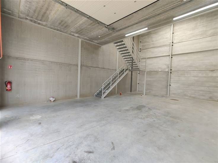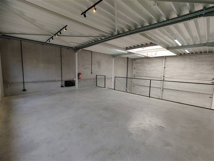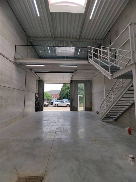 Nieuwbouw KMO-unit van 113 m² magazijn met 56 m² mezzanine, gelegen te Natveld 49 Bilzen te koop/te huur. De unit is gebouwd met een staalstructuur en voorzien van een steeldeck dak. Binnenin bevindt zich een mezzanine van 56 m² die via een vaste trap toegankelijk is, wat extra ruimte biedt voor opslag of kantoorinrichting. Dubbele beglazing en lichtkoepel voor natuurlijk daglicht. De unit is volledig uitgerust met energiezuinige LED-verlichting. Deze bedrijfsruimte is strategisch gelegen in Bilzen, met een uitstekende bereikbaarheid via de nabijgelegen opritten naar de E313. .