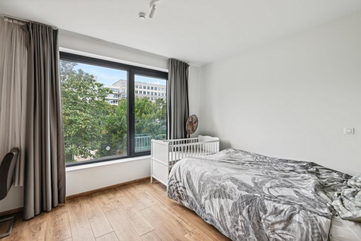 Quartier WTC - Gare du Nord Nous vous proposons ce bel appartement dans un complexe construit en 2019 et situé au 2ème étage avec ascenseur. Il est composé d'un hall d'entrée, d'un grand séjour lumineux avec cuisine ouverte équipée (four, taques vitrocéramiques, frigo-congélateur, hotte, lave-vaisselle et lave-linge) et donnant sur une agréable terrasse, 2 belles chambres de 15 et 10m², une salle de douche, un WC séparé et une cave en sous-sol. Chauffage central collectif - châssis double vitrage - excellent PEB B+ - électricité conforme Actuellement loué 865€ + 140€ de provision de charges pour le chauffage et les communs Charges propriétaire annuelles pour 2023 : 187.87€ Belle opportunité, à visiter sans tarder ! Infos et visites : veuillez contacter Mathilde Perrotto par mail sur office@gestimax.be