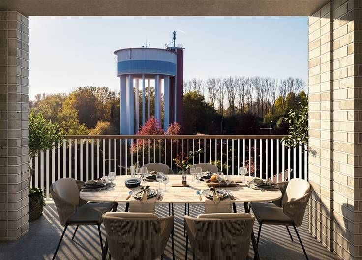 Het project omvat 9 verschillende, karakteristieke bouwvolumes met elk een eigen visuele identiteit. In de brede waaier aan woontypes kan iedereen zijn woondroom realiseren en zich thuis voelen.