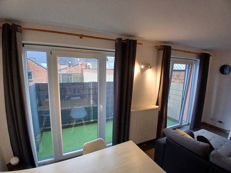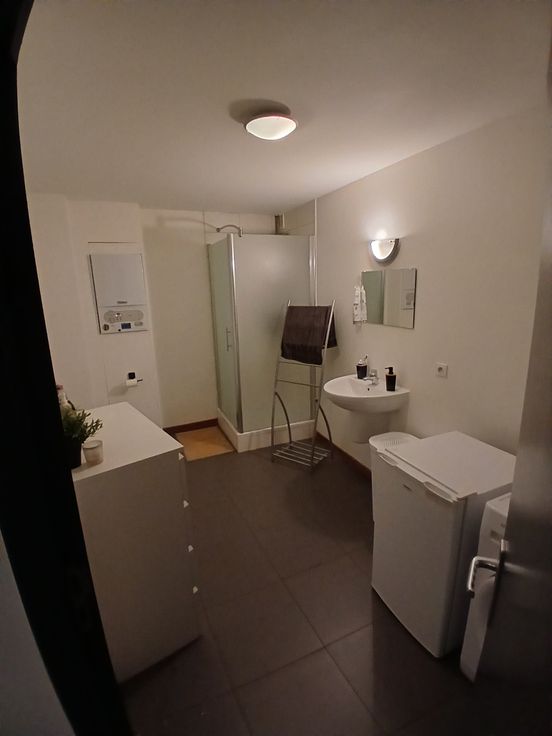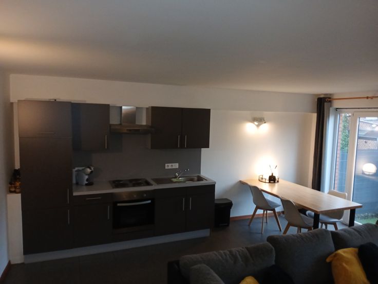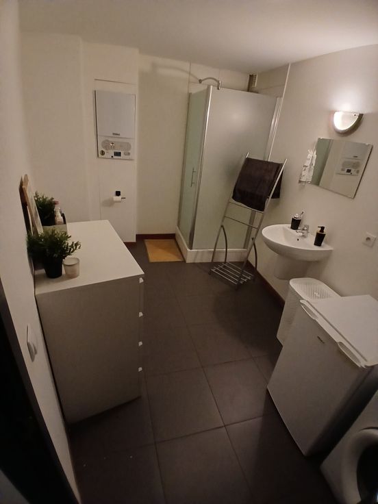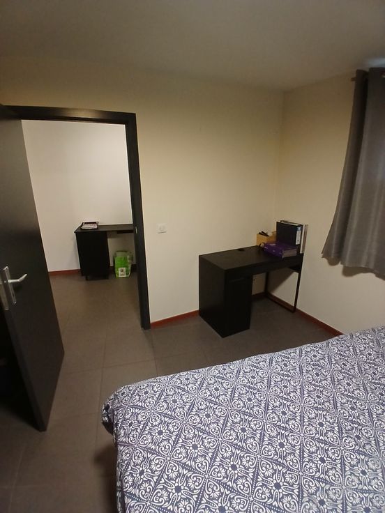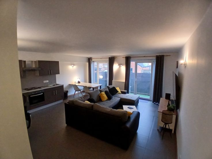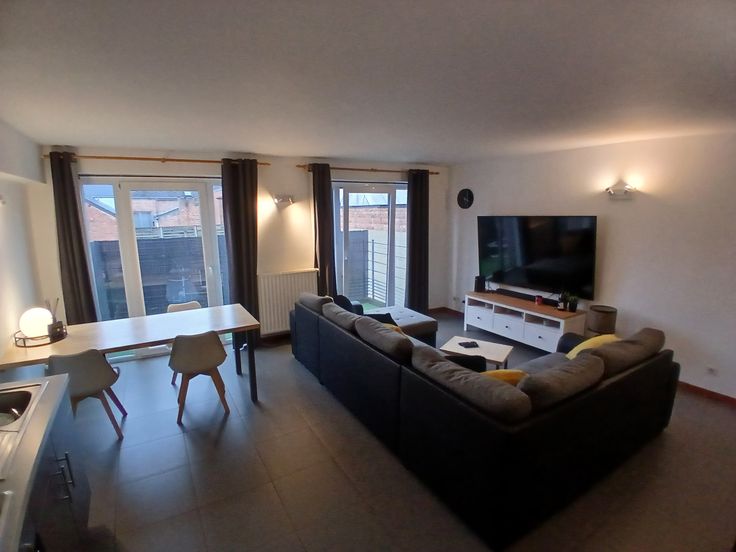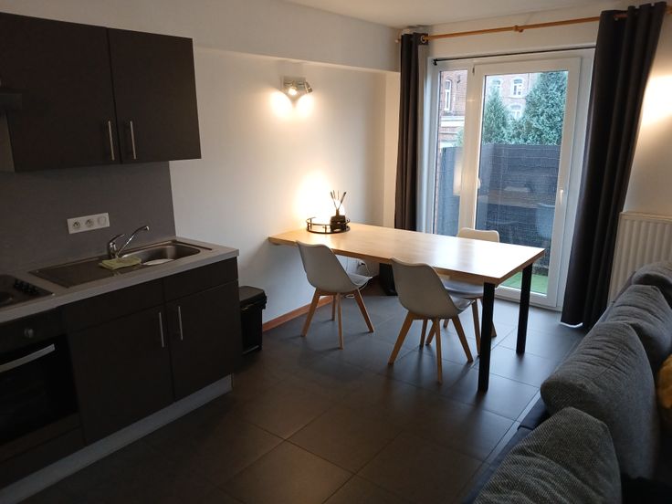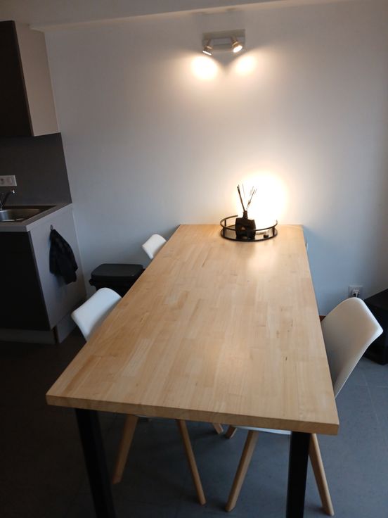 Appartement 1 chambre , salon, cuisine ,sdb,hall de nuit et terrasse de +/- 6m x 1,90m avec brise vue, état impeccable. Je laisse la table, le bureau ,les tentures et la penderie.