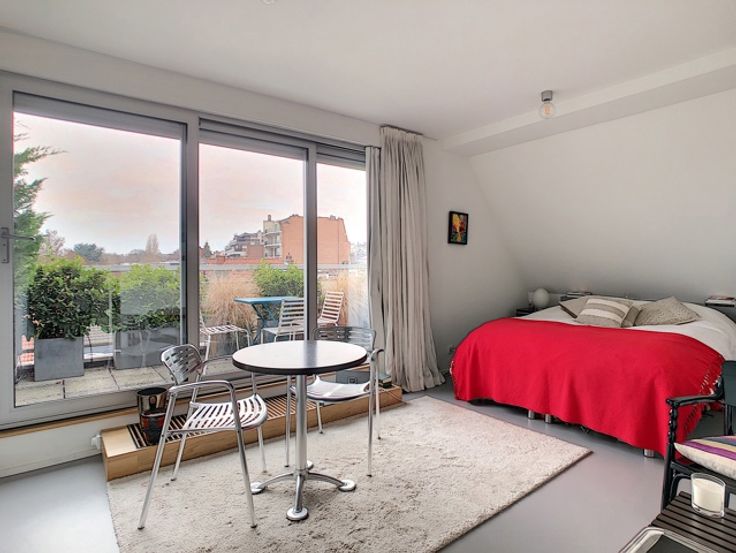 Gelegen vlakbij Avenue Winston Churchill, prachtig gemeubelde studio met een totale oppervlakte van ± 35 m² in een luxueus gebouw. Het bestaat uit een inkomhal met bergruimte, een mooie en lichte woonkamer met kitchenette, een slaapgedeelte en een doucheruimte. Schitterend terras op het zuidwesten (± 5 m²). Kosten: € 150/maand (vast tarief voor verwarming, water, internet, schoonmaak van de studio 1 uur/15 dagen, lift en onderhoud van de gemeenschappelijke ruimtes). PEB F. Geen hoofdverblijfplaats! Om zonder verder uitstel te ontdekken!