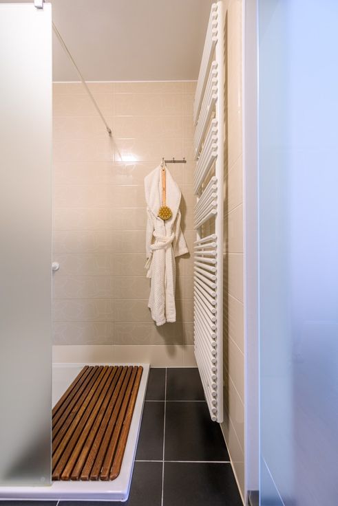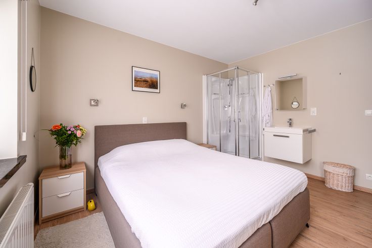 Inkomhal, ruime en lichtrijke leefruimte met zit- en eethoek en een volledig geëquipeerde open keuken. Aansluitend vinden we het aangenaam zuidwest gerichte terras. Het nachtgedeelte bestaat uit 3 ruime slaapkamers, waarvan één is uitgerust met een douche en badkamermeubel. Daarnaast is er nog een afzonderlijke badkamer en een bering.
