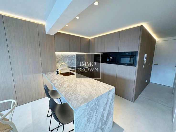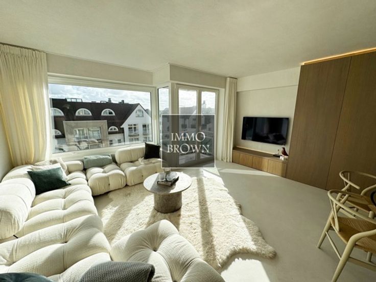 Prachtig gerenoveerd 3-slaapkamer appartement in het centrum van Knokke Zoute, met magnifiek open zicht op de Minigolf en op enkele stappen van de Zeedijk. Indeling van het appartement op de 3de verdieping van de residentie: Inkomhal met vestiaire en gastentoilet. De leefruimte is gekenmerkt door hoge plafonds en grote ramen waardoor deze van veel lichtinval geniet en grenst tevens aan het aangenaam zuidgericht terras met open zicht op de Minigolf. De woonkamer is voorzien van een zithoek en eetplaats. Keuken met modern design, voorzien van alle comfort en huishoudtoestellen van Miele, en voorzien van een ontbijthoek aan het eiland. Praktische berging met aansluiting voor wasmachine en droogkast. 3 slaapkamers waarvan 1 slaapkamer ingericht is met een ingebouwd stapelbed. De hoofdslaapkamer is voorzien van een privatieve douchekamer voorzien van een lavabo, douche en toilet. Gemeenschappelijke douchekamer met douche en lavabo op de nachthal voor de 2 andere slaapkamers. Mooie kwalitatieve renovatie, voorzien van een hoogwaardige afwerking. Privatieve kelder in het gebouw. Mogelijkheid tot het aankopen van een garage in een nabijgelegen residentie.