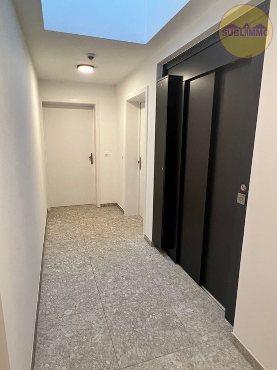 Dit nieuwbouwappartement op de tweede verdieping (105,30 m²) omvat 2 slaapkamers, een badkamer met inloopdouche, toilet en wastafel met 2 lavabo’s, een gastentoilet, een berging/wasplaats en een leefruimte met open keuken. De keuken is volledig geïnstalleerd en biedt een prachtig uitzicht op het terras en de gemeenschappelijke binnentuin. Verder heeft het gebouw een gemeenschappelijke fietsenberging en is er een lift aanwezig.