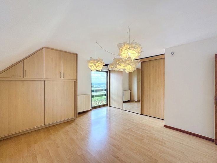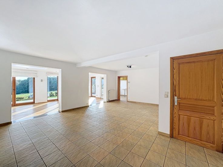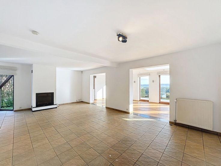 Dans le village de Natoye, nous vous proposons une superbe villa avec terrasse et vue imprenable! Celle-ci ce compose comme suit: RDC: un hall d'entrée avec un WC indépendant, un bureau, une vaste salle à magner, un salon, une cuisine avec une arrière cuisine et une buanderie, un garage pour 2 voitures; 1er étage: 4 chambres et une salle de bains avec baignoire et douche. PEB C soit 202kWh/m2/an. La maison dispose de panneaux photovoltaïques et d'un adoucisseur d'eau. Chauffage au mazout - K7 à bois - compteur bihoraire. Loyer de 1500€. Disponible immédiatement. Infos et visites à l'agence BC IMMO.