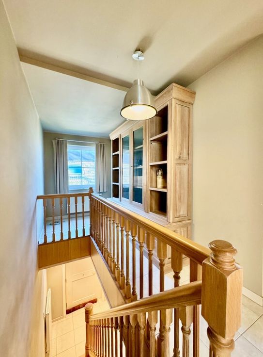 Eerste verdieping: 3 slaapkamers, bergruimte en badkamer met ligbad/douche en toilet.
