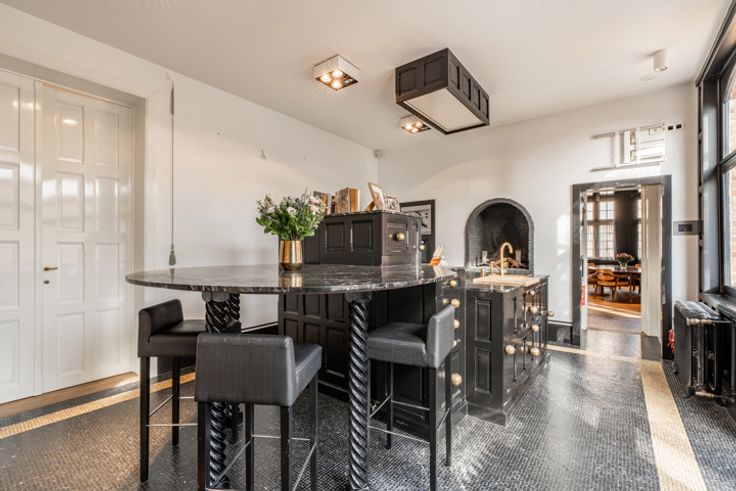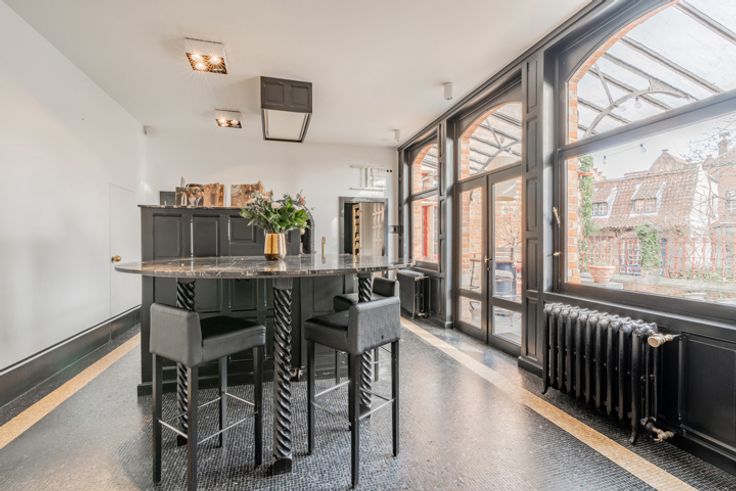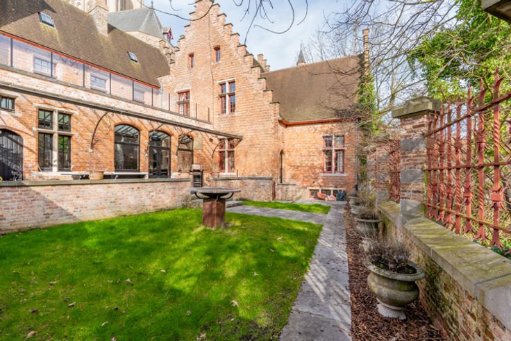 Op één van de mooiste plaatsen in de historische binnenstad van Brugge treft men dit unieke herenhuis met trapgevel, uiterst rustig gelegen vlakbij het bruisende centrum. De voormalige pastoriewoning naar de hand van beroemde Brugse architect Viérin geniet van 2 terrassen en een tuin palend aan het Brugse water, werd gebouwd in 1911, volledig gerenoveerd in 2014 met een onvoorstelbaar hoogwaardige afwerking en met behoud van de authenticiteit, onder leiding van Jean-Philippe Demeyer (JPDEMEYER&CO). De royale inkomhal is voorzien van een gastentoilet, vestiaire, bergruimte en praktische fietsenberging. Bureel, volledig ingerichte keuken voorzien van een koelcel alsook een praktische bijkeuken, een eetplaats en salon, beiden voorzien van een gashaard en met zicht op het water. Via de keuken heeft men toegang tot het prachtig terras en de zonovergoten, romantische tuin. Het eerste verdiep is voorzien van prachtige dressing en 2 ruime slaapkamers met elk een eigen luxueuze badkamer. Zowel via de ene slaapkamer als via de dressing heeft men toegang tot het dakterras met een prachtig uitzicht. Het tweede verdiep is voorzien van een 3de en 4de slaapkamer, ook elk met een eigen douchekamer, een afzonderlijk toilet en een technische ruimte. Tot slot werd deze parel onderkelderd met een leuke bar voorzien van een open haard en polyvalente ruimte met douche, die perfect als fitness benut kan worden. Er is een rechtstreekse toegang van de kelder naar de tuin via een buitentrap.