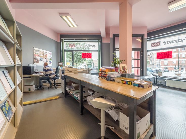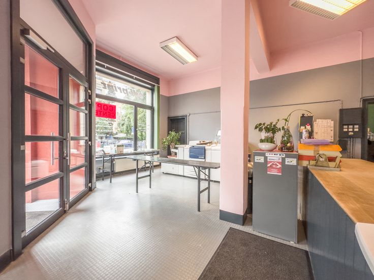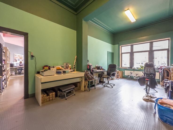 Rez commercial avec plusieurs bureaux et une grande vitrine. Pas de Horeca. Volets protection porte en façade. Hauts plafonds et grands volumes. Possibilités : Bureaux, magasins ou Centre Esthétique, Coiffeurs ou Centre de soins de santé, Espace commercial bureaux ou magasin, sauf Horeca.
