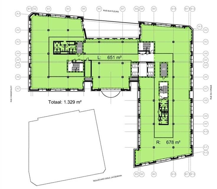 Ruimtes zijn momenteel beschikbaar vanaf 305m² tot +/- 1.329m² (typische verdieping).