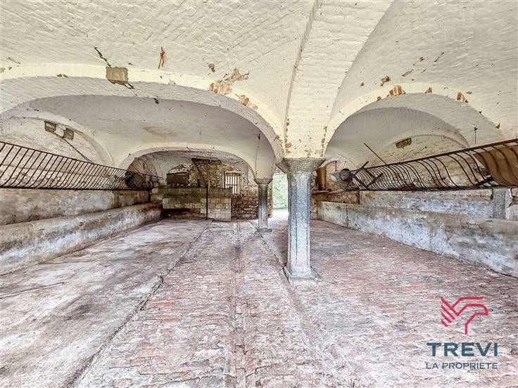 Sorry er is geen nederlandse vertaling beschikbaar. TREVI La Propriété vous présente ce bien exceptionnel offrant une quantité de possibilités d'aménagements. Située dans un endroit calme et verdoyant, cette grange est bâtie sur 680m² et sur un terrain d'environ 2449m² vous pourrez y aménager plusieurs habitations, un gîte, une salle de mariage ou bien d'autres choses. Vous tomberez amoureux de son architecture remarquable, que ce soit dans la partie principale avec ses pilastres et charpentes, ou dans les bergeries avec ses voutes en pierre bleue.