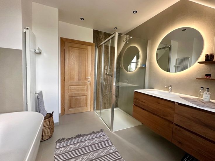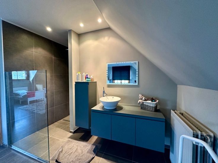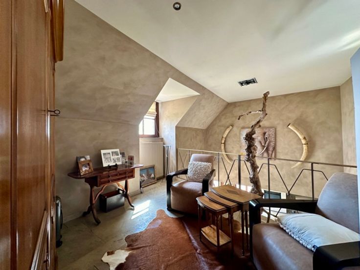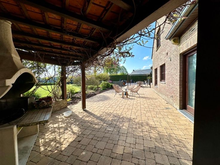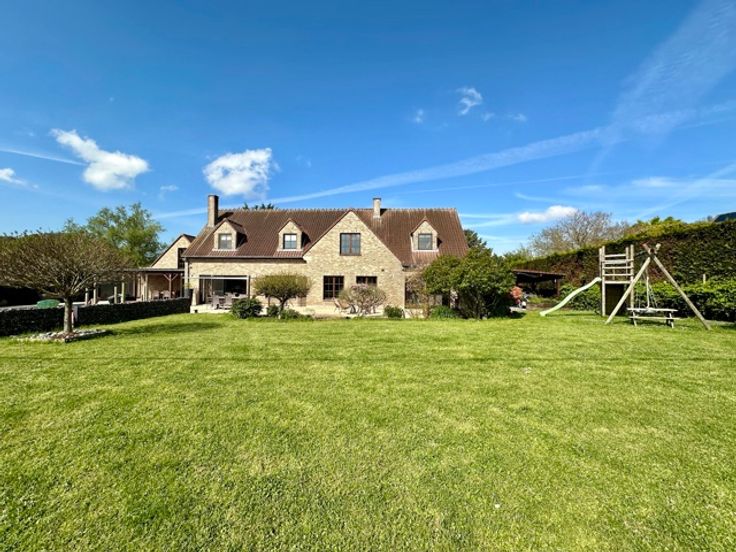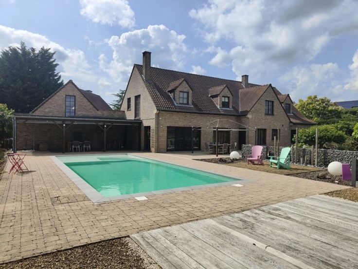 Dans un clos à Wauthier Braine, au bout d'une allée privative, magnifique villa construite en 1996 qui incarne la combinaison parfaite du luxe et de la beauté naturelle. Rénovée et agrandie entre 2008 et 2024, elle se situe sur un terrain de 21a orienté EST avec une superbe vue dégagée sur la campagne environnante. Ce bien se compose de 2 parties : un corps de logis principal de 356m² et une annexe pouvant accueillir un second logement ou une partie professionnelle totalement indépendante. L'ensemble comprend également une piscine chauffée et traitée par électrolyse, d'immenses terrasses pavées et un jardin complètement réaménagé en 2018. Dans l'habitation principale, un grand hall d'entrée vous mène vers l'ensemble des pièces de vie qui s'ouvrent sur le jardin, une salle à manger, un espace salon avec cheminée et coin bibliothèque, une cuisine dînatoire parfaitement équipée avec îlot central, une arrière cuisine/buanderie, un bureau et un double garage. A l'étage, un grand hall de nuit ouvert sur les espaces de vie, dessert 3 chambres (possibilité d'une quatrième) avec 3 salles d'eau dont une suite parentale avec dressing. Au sous sol, différentes caves. L'annexe de 90m² est composée d'une grande pièce avec cuisine ouverte et poil à pellets et wc séparé au rez. A l'étage une pièce de 35m² avec douche et placards intégrés et au sous-sol, un garage 2 voitures (ou atelier). Nombreuses places de parking et un carport 3 voitures. *** FOAPD 1.250.000,00EUR SOUS RESERVE D'ACCEPTAT