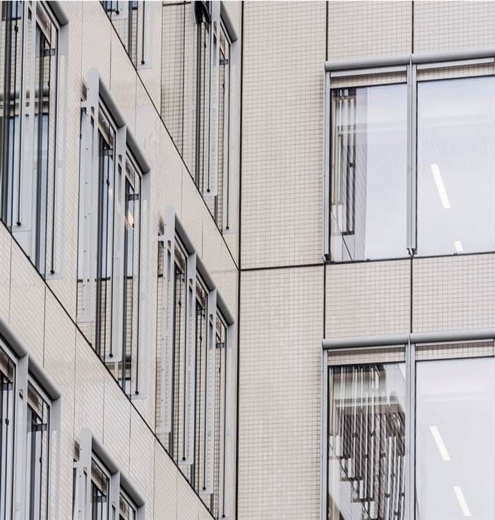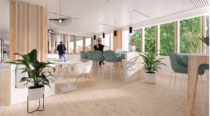 Het volledig gerenoveerde gebouw weerspiegelt zijn selecte omgeving: verfijnde architectuur, technische en ecologische uitmuntendheid, rustige lichte werkplekken, een natuurlijke tuin en een omgeving.