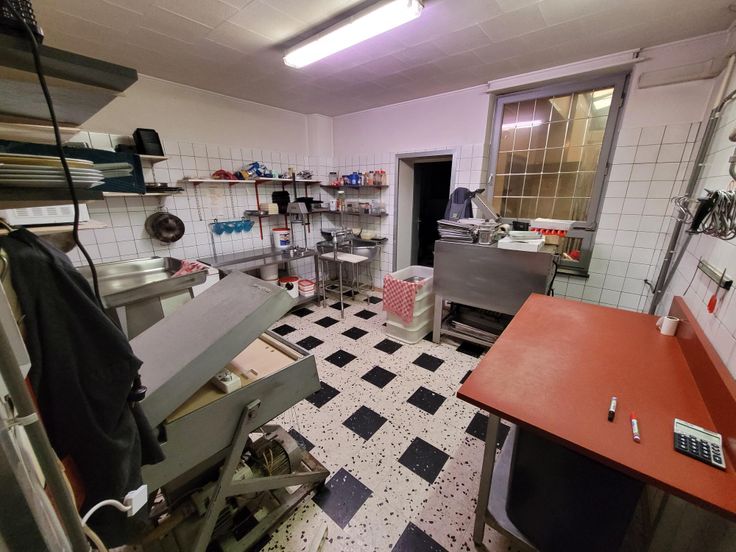 À l'avant, une partie "boutique" de 29m², dans son prolongement, un grand atelier et une cuisine en enfilade. La chambre froide est accessible aussi bien de la partie "boutique" que de l'arrière du bâtiment, afin de faciliter les livraisons.