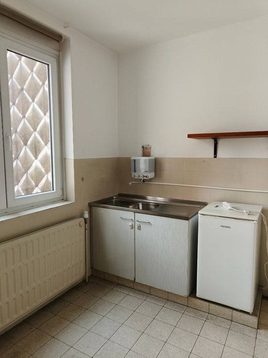 Commerciële gevel van +/- 4,5 m met +/- 80 m² oppervlakte op het gelijkvloers die toegang geeft tot een achtertuin van +/- 40 m².