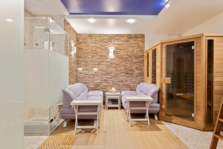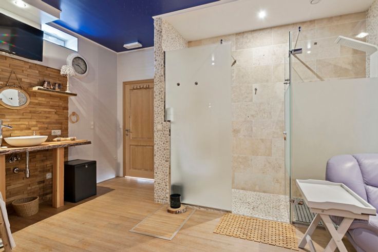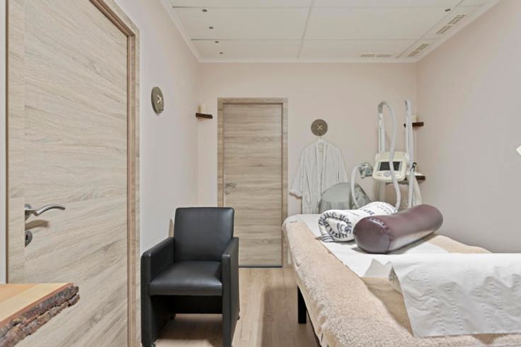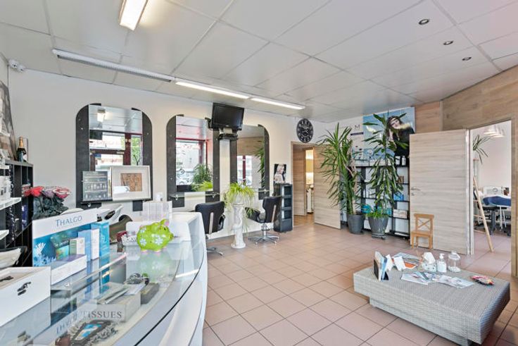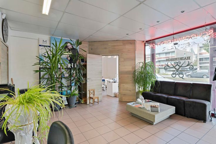 We komen binnen via de kapperszaak, deze beschikt over 3 kappersstoelen/werkplekken en een ontvangstbalie. Via de kapperszaak kunnen we al één van de behandelruimtes betreden. Vanuit de hal achter de kapperszaak is er directe toegang tot de kitchenette (met spoelbak en de nodige aansluitingen voor wasmachine en droogkast), gastentoilet, omkleedruimte en 2 behandelruimtes. Tot slot is er nog een welnessruimte die voorzien is van een vernieuwde Finse- en infrarood sauna, een dompelbad, ruime inloopdouche en toilet.