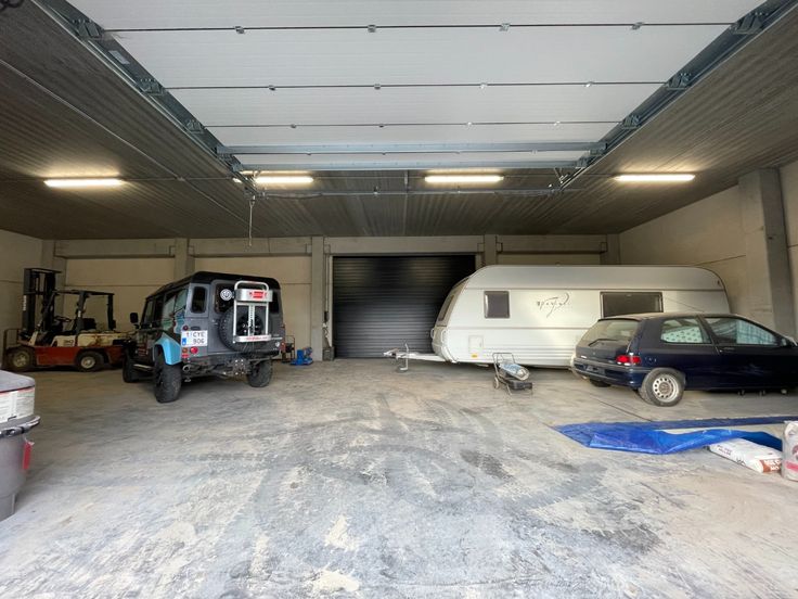 Te huur ruim, afgewerkt magazijn met automatische poort gelegen te Dergneau