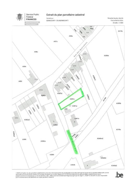 Terrain situé en zone d’habitat de 5 ares 70 centiares (actuellement cadastré section A, numéro 0361AP0000). Revenu cadastral non indexé : 4,00€