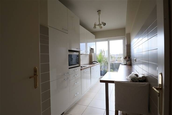 KOEKELBERG - Avenue du Château, Panasi vous propose ce magnifique appartement de ± 80m²entièrement rénové offrant une belle vue et idéalement situé à côté de la Basilique de Koekelberg et proche de toutes les commodités, commerces, écoles et facilités transports en commun (bus, tram, métro), tunnels et ring. Cet appartement 2 chambres est situé au 7ème étage sur 8 d’une copropriété de standing avec ascenseur et se compose comme suit : Hall d’entrée avec placards : ± 4m², Séjour lumineux sur parquet : ± 26m² avec accès à la terrasse de ± 8m² - Cuisine entièrement rénovée avec débarras : ± 14m² - Hall de nuit : ± 3,6m² - Deux chambres : ± 14 et 11m² avec accès à la terrasse arrière de ± 5,5m² - Salle de bain entièrement rénovée : ± 4,5m² - WC séparé. L'appartement dispose d'une cave privative. PEB : D-. Electricité : non conforme (faible réparation) - Porte Blindée - Double vitrage - chaudière collective - Ascenseur - Charges : 195€/mois (Provisions pour le chauffage et l'eau + frais relatifs aux parties communes, syndic, ...) + 18€/mois pour l'alimentation du fonds de réserve. Possibilité d'acquérir un grand garage (box fermé) de ± 18,5m² en supplément à 30.000€. Dans quartier prisé, partira vite ! A visiter dès à présent sur rendez-vous. Infos & visites PANASI : 02/427.01.17 ou info@panasi.be - Retrouvez nos autres biens sur www.panasi.be