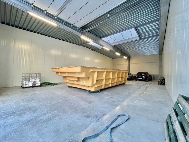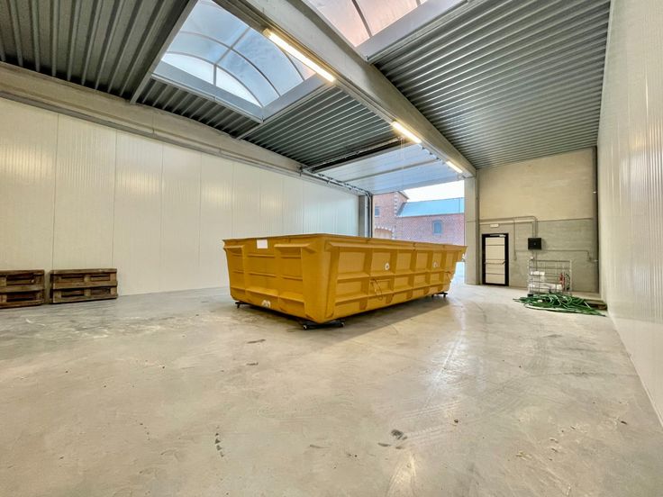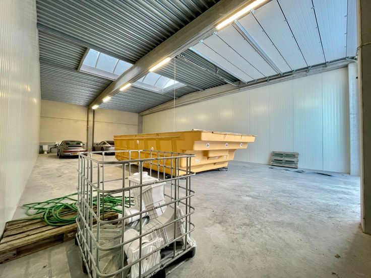 Te huur ruim, afgewerkt magazijn met automatische poort gelegen te Dergneau