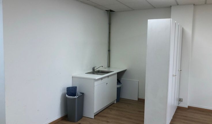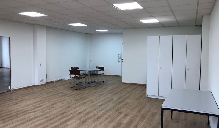Specificaties: open ruimte, laminaatparket, verlaagd tegelplafond (type Rockfon) met inbouw Tl-armaturen, dubbel glas, sanitair voor heren/dames, cv met wandradiatoren