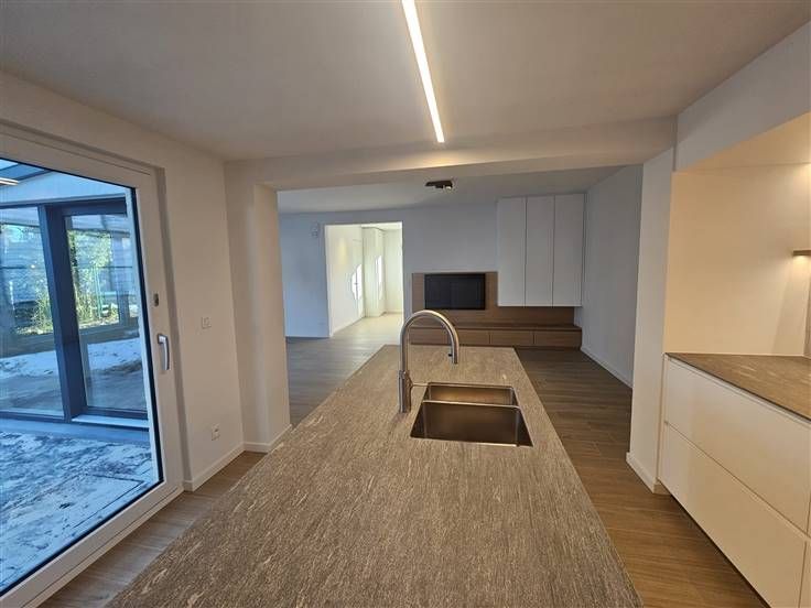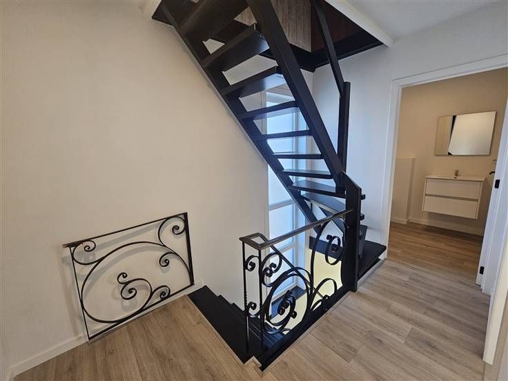prachtig gerenoveerde woning met luxueuze afwerking. Een ruime oprit naast de woning bied veel ruimte voor wagens en er is tevens een laadpunt voor elektrische wagens. Direct in de inkomhal is er een prachtig gerestoreerde trap met sierlijke trapweringen die gemaakt zijn door een ijzersmid. Tevens is er een deur naar een apart toilet en een deur naar een ruim bureau dat overloopt in een grote leefruimte. Dit bureau bied veel mogelijkheden voor mensen die zelfstandige activiteiten hebben en is voorzien van veel ruimte en ingebouwde kasten. De leefruimte ernaast is prachtig afgewerkt en er komt veel licht binnen dankzij de grote ramen. Deze leefruimte is voorzien van ingebouwde design meubels. Deze ruimte loopt over naar een hyper geïnstalleerde keuken met veel opbergruimte en alle nodige toestellen zijn ingebouwd. Er is zelfs een quooker kraan aanwezig Via een verborgen deur kan men naar de badkamer gaan met een ruime wasplaats waar de machines proper weg kunnen steken in ingebouwde kasten. De badkamer is zeer luxueus afgewerkt met een ruime douche die voorzien is van een zalige ingebouwde infrarood straler en zitbank. Er is tevens een ruime wastafel, handdoek chauffage en 2e toilet. buiten is er een overdekt terras en de tuin zal aangelegd worden in het voorjaar van 2024. Tevens zal er een hoge groenblijvende haag worden aangeplant voor de privacy. Op de 1e verdieping is er een 3e toilet en er zijn 3 ruime slaapkamers waarvan 1 voorz