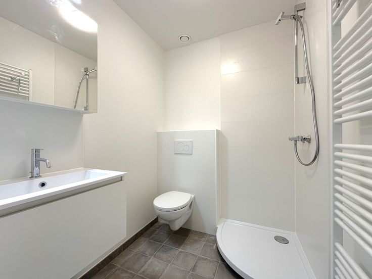 - Badkamer met wastafel, douche en toilet