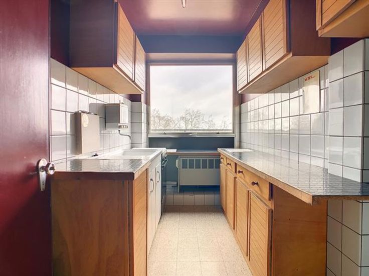 Tournai - Situé dans la Résidence Europe, en face du très beau jardin de la Reine, appartement une chambre situé au 9ième étage comprenant : Hall, wc, cuisine (évier simple et meuble), living, chambre (+/- 10 m²), salle de bains (baignoire, lavabo simple), cave et terrasse (+/- 12 m²) offrant une vue unique sur le parc et le Mont Saint-Aubert. Dispose de châssis double vitrage Alu et PVC pour l'arrière, chauffage central au mazout, parlophone. Aspects énergétiques: PEB n° 20220221019594 - Espec: 638 kWh/m².an - Etotale: 31 872 kWh/an.