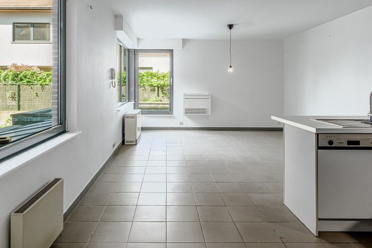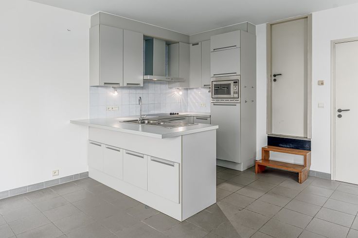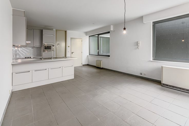 Appartement bestaande uit een heldere en ruime living met open keuken (uitgerust met elektrische kookplaten, combi-oven, afwasmachine,…), ruime berging (ideaal als dressing en/of waskamer), 1 slaapkamer, apart toilet, badkamer (bad & lavabo) en grote kelderruimte.