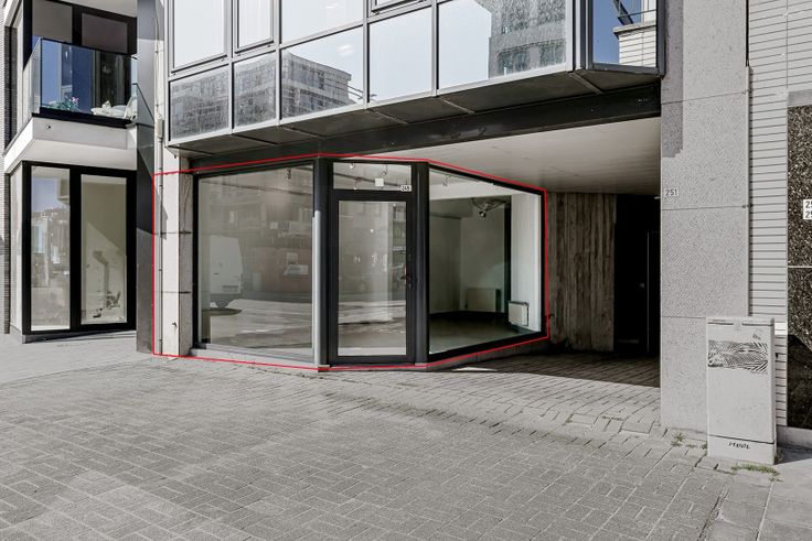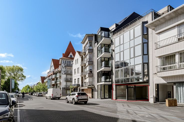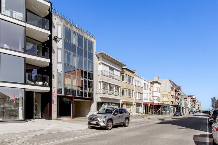 Handelspand / kantoorruimte in de Strandlaan te Koksijde te huur met achterliggend appartement en overdekte autostaanplaats.