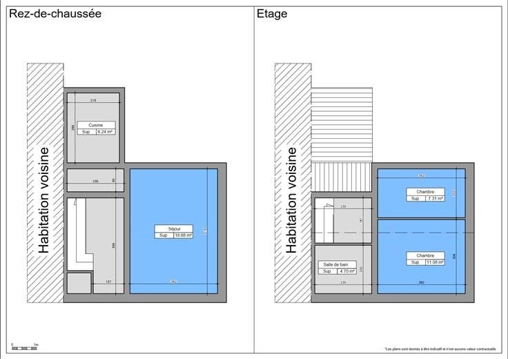 Etage: Hall de nuit, 2 chambres, salle de bain.