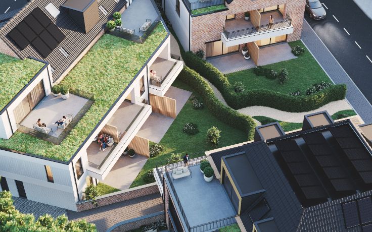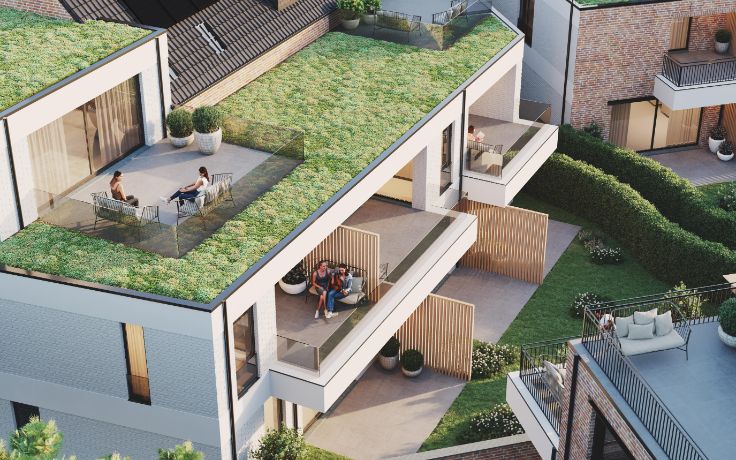 De appartementen zijn stuk voor stuk juweeltjes met tuin en/of terras en veel natuurlijke lichtinval. Ze zijn voorzien van warmtepomp, individuele zonnepanelen en een zeer hoge afwerkingsgraad.