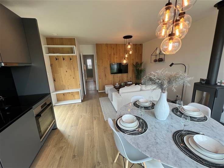 ZELDZAAM IN DE UITVERKOOP! Heeft u altijd al gedroomd van een kleine cocon midden in de natuur? Wij stellen u dit unieke project genaamd "GREEN RIVER" voor, bestaande uit 130 lodges die sleutel op deur worden verkocht en op harmonieuze wijze in een behouden omgeving zijn gevestigd. Het hele project is gericht op de natuur, of het nu gaat om het park en zijn 9 beschermde hectares in de buurt van de Ourthe (maar zonder overstromingsgevaar) en de Ravel, maar ook om de bouw van de lodges met gebruik van natuurlijke materialen. Dit project biedt een intieme en royale accommodatie voor maximaal 6 personen. Wij bieden 3 modellen van 60 m² woonoppervlak op percelen van 300m² tot 900m², afhankelijk van de ligging in het park. Een gemeenschappelijkeruimte is ook aanwezig en biedt een plek om te ontspannen. De lodges hebben allemaal een gezellige woonkamer en moderne keuken, een fietsenstalling, een terras en, afhankelijk van het type lodge, 2 of 3 slaapkamers en 1 of 2 badkamers met douche. U kunt ook kiezen voor een gelijkvloerse lodge of een hoger gelegen lodge. PRIJS VAN 219.488€ excl. BTW: Aarzel niet om de website van het park te bezoeken om de specificiteit van de plaats en de constructies te kennen en om de plannen en de beschrijving te downloaden: www.greenriver.be