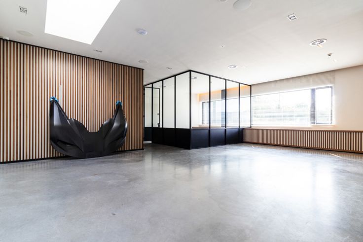 Vous êtes à la recherche d'un endroit ou qualité et exclusivité se mélange ? Découvrez cet espace de bureaux/showroom unique au sein d'un showroom automobile exclusif installé dans un parc industriel idéalement situé au croisement de la E411, la N4 et la N25 à deux pas de Louvain-la-Neuve. Situé au premier étage accessible par un hall d'entrée imposant équipé d'un ascenseur à voiture, 120m² d'espace privatif sont proposé à la location et offre un grand espace de bureaux/open (35m²) pouvant recevoir 4 postes de travail, deux espaces de bureaux individuel aménagés (13/16m²) et un espace accueil clients (55m²) pouvant également servir d'espace d'exposition de produits ou encore pour faire un bureaux supplémentaire. Chaque bureaux bénéficie d'une belle lumière naturelle grâce à de grande baie vitrée donnant sur la nature environnante. Cet espace dispose également d'un accès à des sanitaires (WC/douche) et d'une grande cuisine (50m²) super équipée faisant également office d'une grande salle de réunion équipée d'un grand écran. Le showroom abrite des voitures exclusives. L'ensemble des espaces est aménagé avec des matériaux de qualité et harmonieux. Chaque bureaux bénéficie d'une climatisation réversible (chaud/froid) réglable de manière individuelle par bureau. Batiment totalement isolé. Le parc Jaurdinia offre un confort de vie agréable avec des espaces verts. Possibilité de louer des espaces de stockage/entrepôt sur le parc. Loyer : 2.000€/mois + 500€ de charge (All In : chauffa