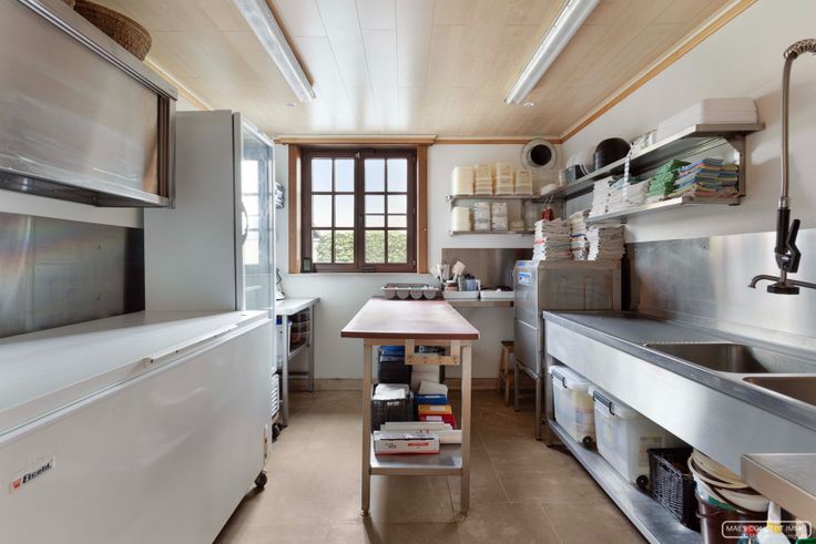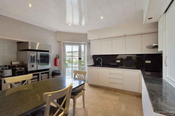 De benedenverdieping is volledig ingericht met een professionele keuken en alle benodigde apparatuur voor een naadloze bedrijfsvoering.