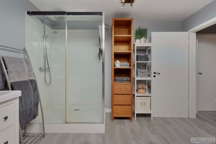 Badkamer met douche en lavabomeubel