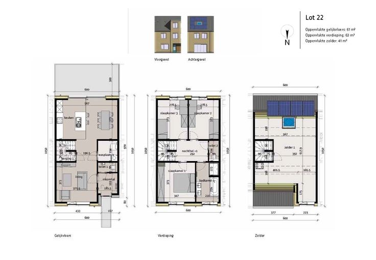 Op lot 22 wordt een energiezuinige gesloten woning gebouwd in traditionele stijl op een grondopp. van 135 m² en met een totale bewoonbare oppervlakte van 124m² op de 1e en 2e verdieping en 41m² op zolder. GELIJKVLOERS: inkom, wc, lichtrijke ruime leefruimte, wasplaats met aansluiting voor wasmachine en droogkast, open keuken aan de tuinzijde. Mooie zuidelijk georiënteerde tuin met tuinberging en aangeplante hagen. EERSTE VERDIEPING: 3 slpks, open bureauruimte, aparte wc, badkamer ingericht met inloopdouche en badkamermeubel met dubbele lavabo, vaste trap naar de zolderverdieping. Privéstaanplaats met mogelijkheid elektrisch laden voorzien. De woningen in deze verkaveling worden volledig afgewerkt aangeboden: met een ingerichte keuken badkamer (met douche en dubbel lavabomeubel), 2 toiletten, deuren en vloeren. Bij sommige woningen wordt de zolder afgewerkt als master bedroom. Incl. Vloerverwarming standaard voorzien op het gelijkvloers, Ventilatiesysteem D, Regenwaterput 10.000L,  Zonnepanelen inbegrepen waardoor de woning maximum E3 behaalt (fiscaal voordeel: 5 jaar vrijstelling betaling onroerende voorheffing!) en Warmtepomp. Incl. Hagen en tuinhuis. Download de brochure op https://www.durabrik.be/nl/nieuwbouwprojecten/wetteren-blauwe-paal/woningen. Voor meer info contacteer ons via het gratis nummer 0800 62 732 of via info@durabrik.be   Renovatieplicht: nee