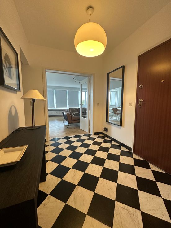 Situé au 6 ème étage du boulevard frère Orban , cet appartement luxueux de fonction est fait pour vous . Entièrement meublé il est composé d un hall d entrée, un wc séparé, une salle de douches, 2 chambres , une cuisine équipée ouverte sur le salon, salle à manger . Loyer: 1500 euros. Charges : 250 euros ( communs, chauffage et eau), compteur électrique à votre nom. Peb c. État des lieux fait par un expert ( quote part à prévoir) . Visites et renseignements au 0484/06.1000