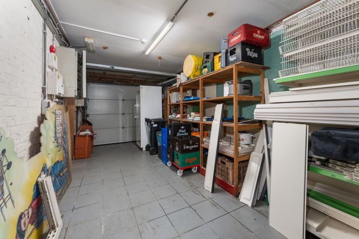 In de garage vindt u alle nutsvoorzieningen terug, o.a. elektriciteit (dag/nacht), aardgasteller, omvormer zonnepanelen, stadswater, uitgietbak, doorstromer en alarm/beveiliging.