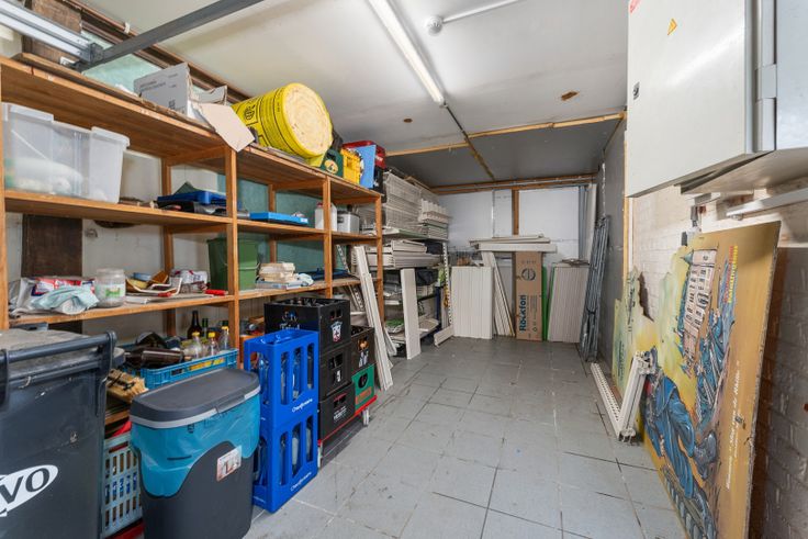 De garage kan nog worden uitgebreid door de voorraadkamer in de ruimte te integreren.