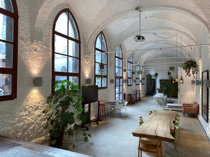 Verschillende karaktervolle kantooroppervlaktes in het bijzondere voormalige Sint-Paulusklooster in het oud centrum vlakbij de Scheldekaaien van Antwerpen.