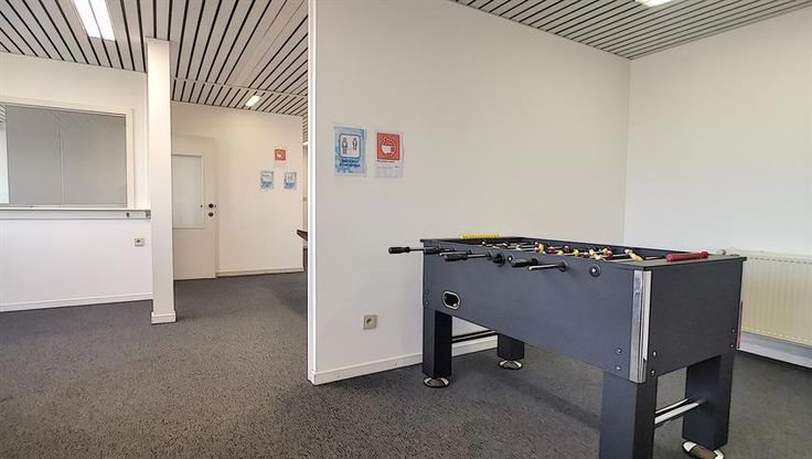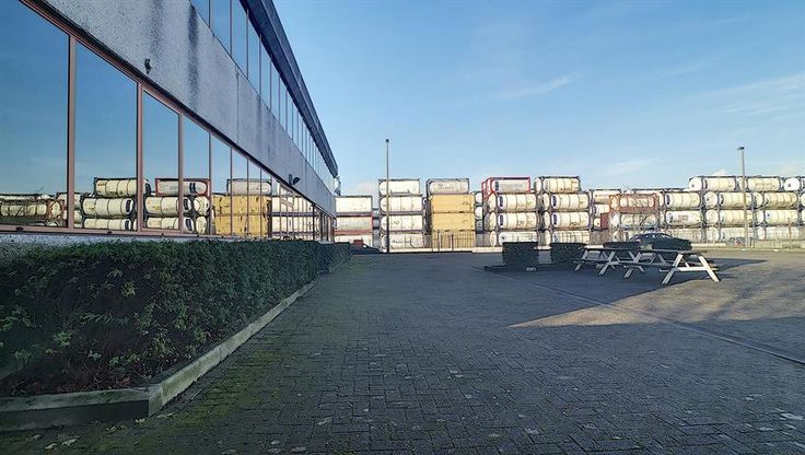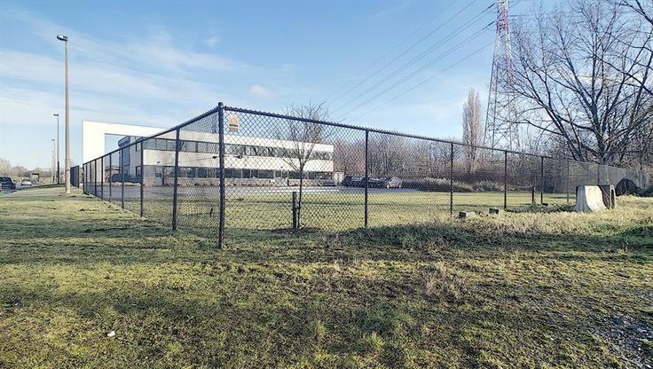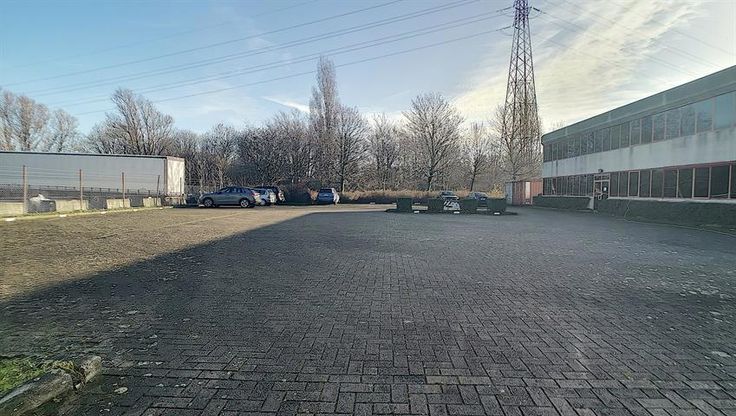 Grote parking voor het gebouw, plaats voor een 40-tal wagens.