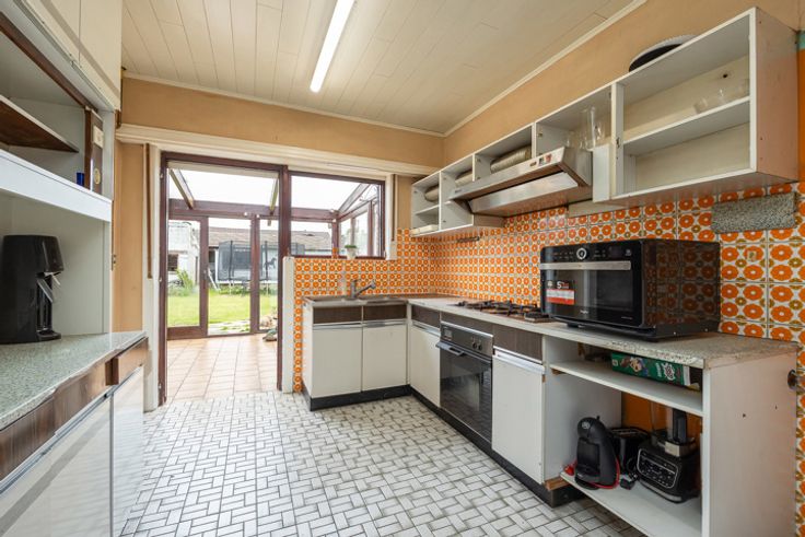 Deze te renoveren laagbouwwoning bevindt zich op een rustige locatie in Zoersel op een boogscheut van het centrum. Nabij de woning bevinden zich verschillende winkels, scholen en diverse uitvalswegen. We betreden de woning via de inkomhal dewelke voorzien is van een gastentoilet en toegang verleent tot de woonkamer met een eet- en zitgedeelte. Vervolgens bereikt u de keuken, deze is basis uitgerust, met daar aansluitend een lichtrijke veranda. De nachthal biedt toegang tot drie volwaardige slaapkamers en een badkamer dewelke uitgerust is van een ligbad. De zolderverdieping biedt voldoende mogelijkheden voor het creëren van extra slaapkamers. Verder beschikt deze woning over een gezellige tuin met tuinberging en een inpandige garage voor het stallen van uw auto. Troeven: - gunstige locatie - woning met veel potentieel - niet onderworpen aan de renovatieverplichting