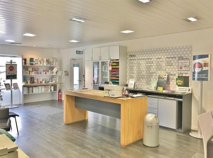 We hebben een winkelruimte met een aparte bergplaats, bureauruimte, kitchenette en toilet.