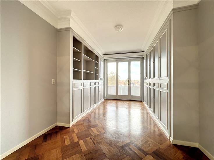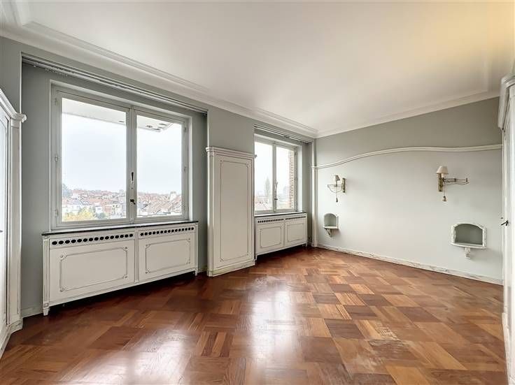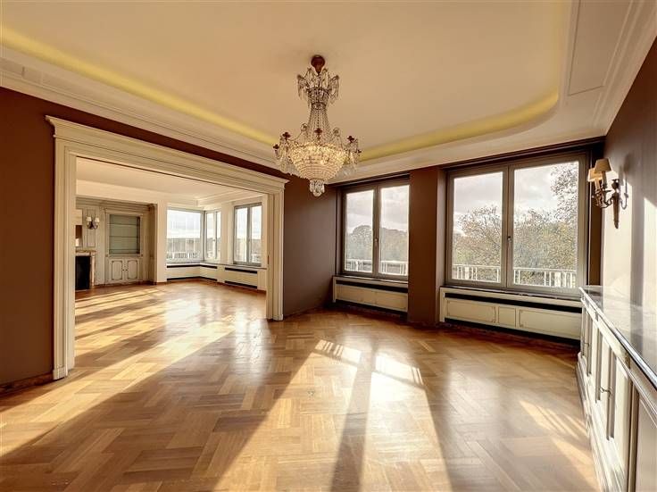 Bezoek deze woning: 0478/07.34.26 // Sint-Pieters-Woluwe, tegenover Parc de Woluwe, lichte 4-slaapkamer karakter flat van ±210 m² met twee terrassen van ±12 en 4 m² op de 5e verdieping van een goed onderhouden gebouw gelegen in de buurt van winkels, scholen, parken en vervoer . Het bestaat uit een grote hal, een lichte woonkamer (±54 m²) met een decoratieve open haard, een volledig uitgeruste keuken (oven, gaskookplaat, afzuigkap, koelkast, vriezer, vaatwasser, magnetron) met een ontbijthoek die uitkomt op een terras op het zuiden met uitzicht op het Woluwé park, een nachthal met garderobe, wastafel en aparte wc, een nachthal van 5 m² met kasten, een hoofdslaapkamer van 19 m² met aangrenzende badkamer (bad, douche, dubbele wastafels, wasruimte), 2 slaapkamers van 13 en 12 m² met ingebouwde kasten en toegang tot het achterterras van 12 m², een studeer/slaapkamer van 16 m² en een doucheruimte (douche, dubbele wastafels en wc). Parketvloer, dubbele beglazing, collectieve gasketel. Bijkomende kosten: €300/maand (voorzieningen: gemeenschappelijke ruimtes, verwarming, warm en koud water, beheerder). Een garagebox te huur: €100/maand (verplicht). Pluspunten: locatie +++, helderheid, twee terrassen met uitzicht, grootte van de woonkamer, flat met karakter, dicht bij winkels, scholen, parken en vervoersverbindingen. Afmetingen zijn ter informatie. Beschikbaar per direct!
