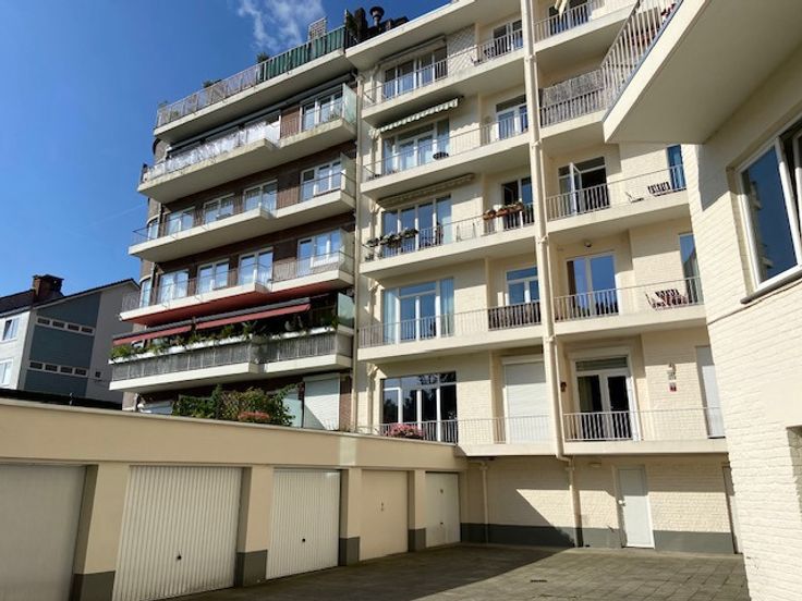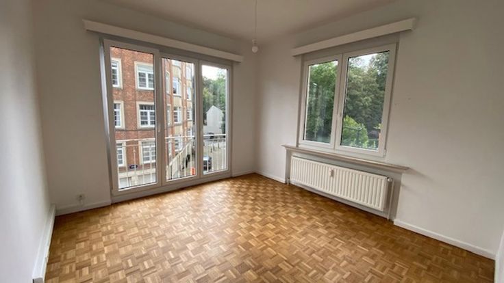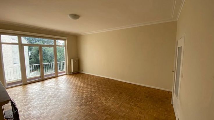 Zeer goede locatie voor dit lichte appartement op de 2e verdieping van +/-97m2 (volgens EPC) in het hart van de wijk Montjoie. Inkomhal met vestiaire, woon/eetkamer die uitgeeft op het zuidwestelijk gelegen achterterras, ingerichte keuken, 2 slaapkamers (+/-15 en 14m2), apart toilet en badkamer (bad met douche en wastafelmeubel) met wasplaats. Grote privékelder. Dubbele beglazing PVC ramen. Installatie in 2023 van twee nieuwe Viessmann gascondenserende verwarmingssystemen. Geen conciërge. Lift. Voorziening voor gemeenschappelijke kosten (verwarming, warm water, beheer, verzekering, schoonmaak, enz:) 182€/maand.