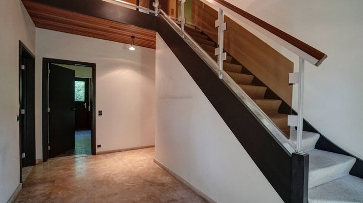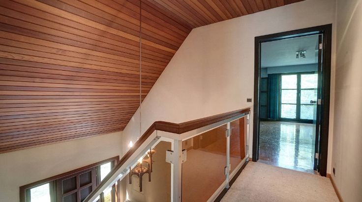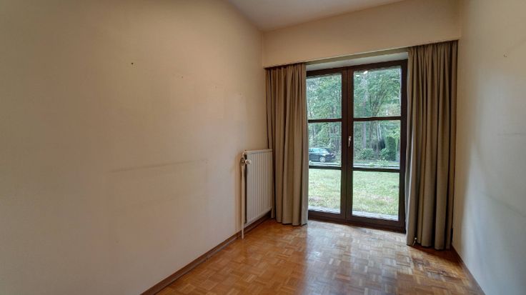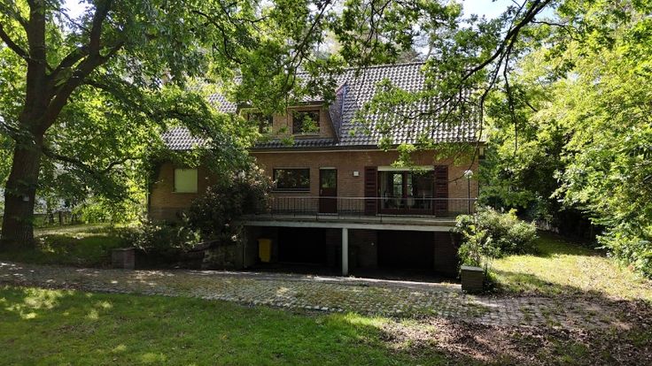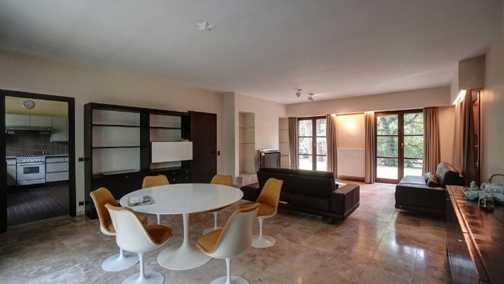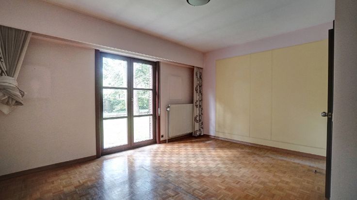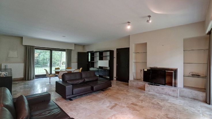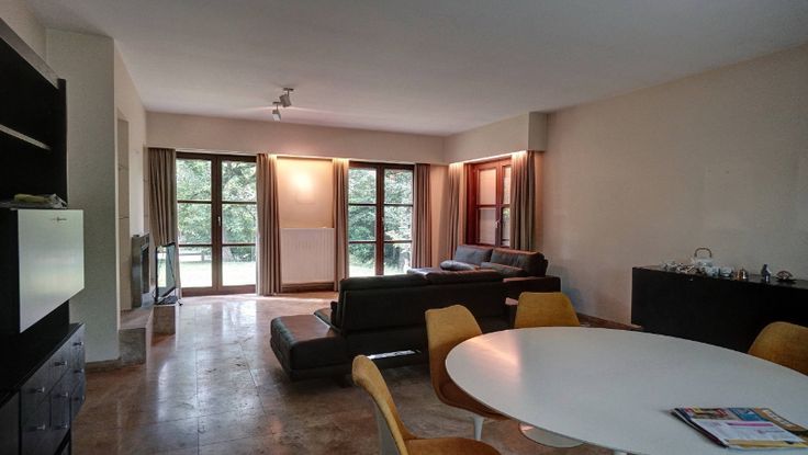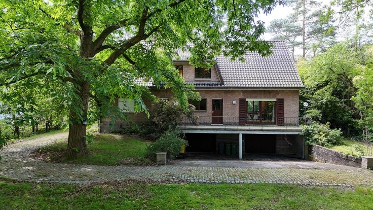De villa omvat: volledige onderkeldering (3 garages, bergkelders, wasplaats en cv-plaats), inkomhal, wc, living van 47m² met haard en aanpalend terras, keuken (16m²), 5 slaapkamers waarvan 2 op het gelijkvloers (22m², 19m², 16m², 16m² en 16m²), bureel (7m²), 2 badkamers (1 op het gelijkvloers) en berging. Zuiden vooraan.