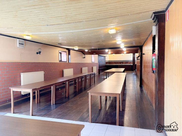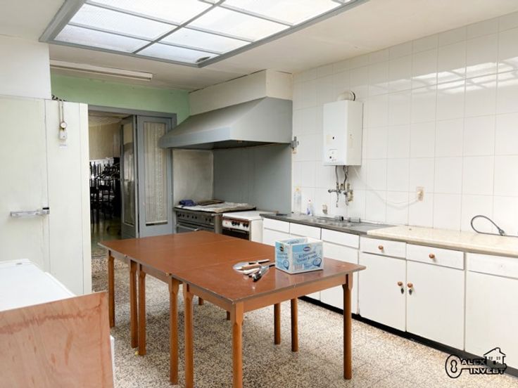 Situé proche de toutes les facilités, immeuble mixte de +/- 300 m2 composé comme suit : REZ : Hall d'entrée, Grande Salle des Fêtes, Bar, Cuisine, grande Pièce polyvalente, WC hommes et femmes séparés. Au 1er ETAGE, Appartement à rénover entièrement. Deuxième Salle à l'arrière du Bâtiment à rénover complètement. Grand PARKING et Plusieurs GARAGES. Chauffage central au Gaz, Châssis mixte Double Vitrage. Faire offre à partir de 525.000€ sous réserve de l'acceptation des propriétaires. ENORME POTENTIEL ! A ne pas manquer !!!